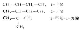 由于存在双键,使烯烃的异构体数目比相应的烷烃多。如丁烷只有两种同分异构体,而分子式为C4H8的丁烯则有三种构造异构体。