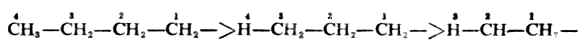 此外应注意:一个原子序数大的原子要比两个或三个原子数小的原子优先,例如: