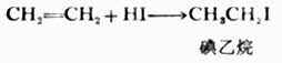 烯烃与卤化氢(HI,HBr,HCl)的加成反应也是亲电加成反应,生成卤代烷。例如:
