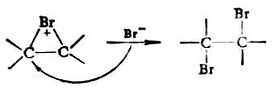 第二步Br-从溴鎓离子的背面进攻,得加成产物。