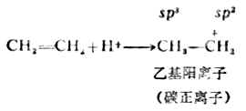 ”表示一对π电子的转移方向,δ+及δ-表示双键两个碳原子上电荷的分布不均匀。因而,当亲电试剂H+向丙烯发动进攻时,其攻击部位是丙烯分子中带部分负电荷的碳。这样,生成的中间体是