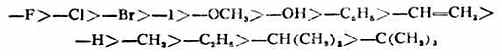 根据上述规则,一此常见的原子及原子团的优先顺序是:I>Br>Cl>-SO3H>F>