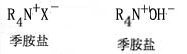 季胺化合物可看作是铵盐(NH4+X-)或氧氧化铵(NH4OH)分子中氮原子上的四个氢原子都被烃基取代生成的化合物,它们分别称为季铵盐和季铵碱。