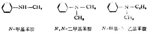 氮原子上同时连有芳香烃基和脂肪烃基的仲胺和叔胺的命名,则以芳香胺为母体,脂肪烃基作为芳胺氮原子上的取代基,将名称和数目写在前面,并在基前冠以“N”字(每个“N”只能指示一个取代基的位置),以表示这个脂肪烃基是连在氮原子上,而不是连在芳香环上。