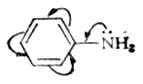 (2)芳香胺的碱性 芳香胺的碱性比脂肪胺弱得多。例如苯胺的pKb=9.40,这是因为苯胺中氮原子的未共用电子对与苯环的π电子相互作用,形成一个均匀的共轭体系而变得稳定,氮原子上的电子云部分地转向苯环,因此氮原子与质子的结合能力降低,故苯胺的碱性比氨弱得多。