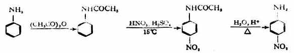 酰胺是晶形很好的固体,有一定的熔点,所以利用酰化反应可以鉴定伯胺和仲胺。叔胺不起酰化反应,故此性质可用来区别叔胺,并可以从伯、仲、叔胺的混合物中把叔胺分离出来。此外,酰胺在酸或碱的催化下,可水解游离出原来的胺。由于氨基活泼,且易被氧化,因此在有机合成中可以用酰化的方法来保护芳胺的氨基。例如: