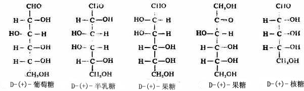自然界已发现的单糖主要是戊糖和己糖。常见的戊糖有D-(-)-核糖、D-(-)-2-脱氧核糖、D-(+)-木糖和L-(+)-阿拉伯糖。它们都是醛糖,以多糖或苷的形式存在于动植物中。常见的己糖有D-(+)-葡萄糖、D-(+)-甘露糖、D-(+)-半乳糖和D-(-)-果糖,后者为酮糖。己糖以游离或结合的形式存在于动植物中。