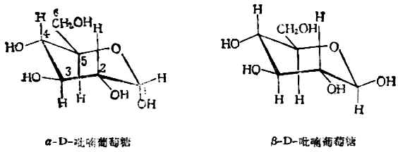 事实丰,形成吡喃环的各个原子,并不完全在一个平面上,而是以较稳定的椅型构象存在。因此,为了更合理地反映其结构,现在常用构象式来表示。α-D-和β-D-葡萄糖的构象式如下: