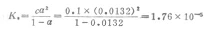 利用离解常数可以计算一定浓度某弱酸溶液中的H+浓度,或计算弱碱溶液中的OH-=浓度。