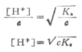 根据式(2-3)和式(2-4),可以计算一定浓度的弱酸或弱碱的[H+]或[OH-]。