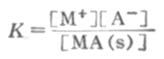 电解质的溶解度在每100g水中为0.1g以下的,称为微溶电解质。在一定温度下,当水中的微溶电解质MA溶解并达到饱和状态后,固体和溶解于溶液中的离子之间就达到两相之间的溶解平衡: