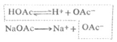 在缓冲溶液例如HOAc-NaOAc溶液中,有以下的离解平衡: