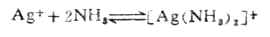 在水溶液中,[Ag(NH.3)2]+是稳定的,不过像其他弱电解质一样也有少数[Ag(NH.3)2]+发生离解,可用下式表示: