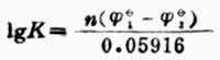 氧化还原K与反应中两个电对的标准电极电位的关系为: