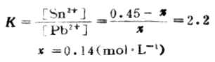 例13 向0.45mol.L-1铅盐溶液中加锡,发生下列反应,