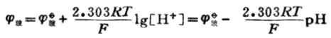 如果有H+或OH-参加电极反应,则H+浓度对电极电位会有影响。把这个电极作为指示电极和一个参比电极组成电池,测定电池电动势,就可以算出指示电极的电位,溶液中H+浓度即溶液的PH值。