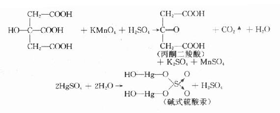 (3)与硫酸及高锰酸钾反应 取供试品溶液1滴,加高锰酸试液及2N硫酸溶液各1滴生成紫色沉淀,加热2-3分钟,再加过氧化氢溶液1滴,紫色不褪。