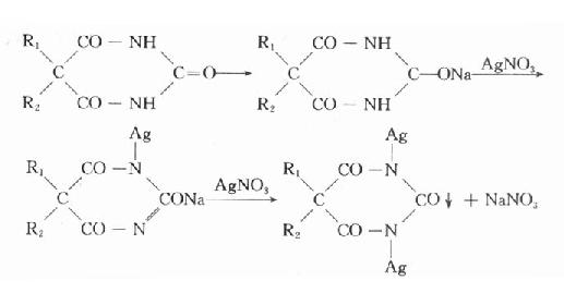 (1)取供品溶液,加稀盐酸,即后成白色凝乳状沉淀。分离,沉淀能在氨试液中溶解而形成[Ag(NH3)2]+络离子,继加硝酸,沉淀复生成。