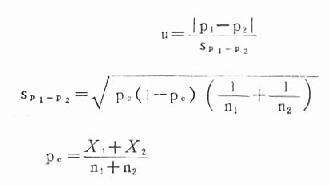 观察样本数较大时,样本率的频数分布近似正态分布,可应用正态分布的规律性检验率的差异显着性。其公式为: