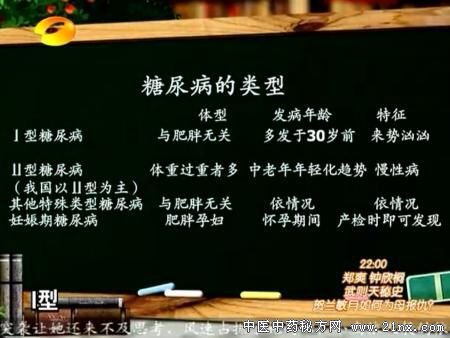 2011年11月16日、北京协和医院糖尿病中心主任,北京糖尿病防治协会理事长向红丁教授,做客湖南卫视百科全说,向全国电视观众传播防治糖尿病的相关知识。 造成糖尿病的遗传因素-节约基因 人人都有可能得糖尿病,有糖尿病家族史的人更要注意预防 体重指数计算方法: 体重(公斤)除以身高的平方,超过24超重,超过28就是肥胖 百科全说20111117视频