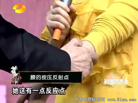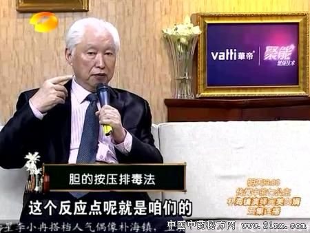 演示在后背右肓胛骨中间,如果按着痛,胆就有问题,每天按60次,2月排石