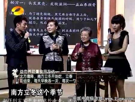 2011年12月19,中国中医科学院知名专家、主任医师,香港保健协会医学顾问王连清,做客湖南卫视百科全说,向全国电视观众介绍红墙内的保健秘方。 王连清教授后师从于施今墨、秦伯未、谢子衡等中医泰斗,还跟随杨济生、叶心清、孙振寰和杨三甲等针灸名医学针灸,总结出了自己的针灸方法和开方心得。“宝剑锋从磨砺出,梅花香自苦寒来”。王连清教授以其精湛的医术不仅挽救了许多病入膏肓的人的生命,更为人们健身强体总结出了行之有效的养生好方法。现在王老被聘为卫生部讲师团首席健康教育专家,73岁的高龄仍然工作在全民健康教育的最前沿。 王连清益血养颜膏 所需原料有阿胶1斤,黄酒1斤,冰糖半斤,炒熟的黑芝麻、核桃仁,桂圆肉或大枣肉适量。具体做法是将1斤阿胶放入1斤黄酒中浸泡3天到1周后,加入半斤冰糖,放到蒸锅里烊化,再加适量炒熟的黑芝麻、核桃仁、桂圆肉或大枣肉,搅拌成膏状,装盒放在冰箱里保存。每日早晚各服1次,每次服用1大汤匙。可以益血补气,滋润皮肤。 百科全说20111219 视频