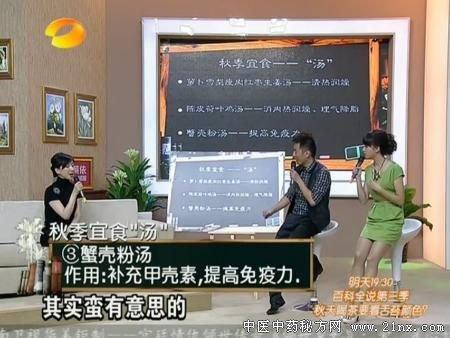 王琼博客介绍蟹壳粉汤做法:吃完的蟹,把蟹壳磨成粉,煮汤喝。 百科全说 王琼 蟹壳粉汤作用:补充甲壳素 提高免疫力 蟹壳《千金·食治》: “味酸,寒,有毒。”入肝、脾二经 蟹壳的功效:破瘀消积。治瘀血积滞,胁痛、腹痛,乳痈,冻疮。《纲目》:"烧存性,蜜调,涂冻疮及蜂虿伤;酒服,治妇人儿枕痛及血崩腹痛,消积。" 《本草崇原》:"攻毒,散风,消积,行瘀。"