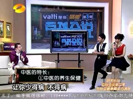 百科全说20111122,王鹤滨医学研究中心院长闫民川第二次走进湖南卫视百科全说演播室,向全国电视观众介绍亚健康的诊断和调理的相关知识。 百科全说闫民川从中西医辩证看“亚健康”,您是否处于“亚健康”状态?您是否知道“亚健康”也为心肝脾肺肾五种类型?不同的“亚健康”怎样自我检测?亚健康的下一步就会是疾病么?11月22日19:30《百科全说》之如何走出“亚健康”! 百科全说20111122视频 亚健康的自我检测方法:心型亚健康、肺型亚健康、肝型亚健康、脾型亚健康、肾型亚健康 导致亚健康的原因:1.外在的环境因素、社会因素 2.内在的逆时而作、过度疲劳、心绪不宁 闫民川在业界名声赫赫,他按照“跟着太阳走,随着季节养,按着时辰调”的独特养生方式,将这一中国古老的宫廷养生理论和技术应用到现代人的保健当中,在业界有很高声誉。 在第一期节目中,闫民川老师重点和观众介绍了“亚健康”的具体表现和治疗方法。亚健康的概念是最近才提出来的,但是亚健康的问题或者症状自古有之。中医对“亚健康。”的研究已经有两千多年的历史了。《黄帝内经》中的“未病”其实说的就是现在的亚健康,只是到了物质文明与精神文明的今天,亚健康的问题发展的更为剧烈。