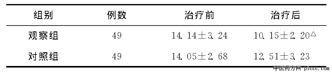 注:与对照组治疗后比较, △P<0.05