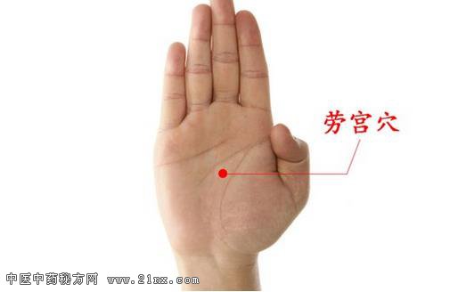 劳宫穴是手厥阴心包经的荥穴,在手掌心,当第2、3掌骨之间偏于第3掌骨,握拳屈指时中指尖处。