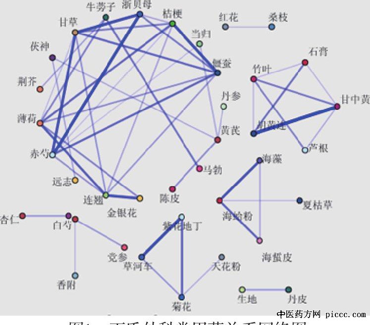 1.5其他如“肝”病证常选用连翘 (散结消肿) 、浙贝母 (开郁散结) , 不同于内科病疏肝多用柴胡、香附等品。“疫毒”证常选用金银花、连翘、薄荷、浙贝母等清热解毒药物, 与该类病证热毒多见而寒毒少见有关;“痰湿”证常选用浙贝母、赤芍、甘草、僵蚕、连翘等, 体现了丁甘仁宣肺化痰的治疗思想, 也反映了外科病热证居于主流的现实。