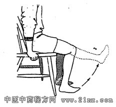 退行性骨关节炎是一种慢性退行性骨关节病,是由于关节增生退变导致的一系列症状。临床表现为膝关节疼痛,运动后加重,休息后减轻,行走不方便,伸屈膝关节受限,下蹲困难,上下楼梯疼痛明显,或突然活动发生刺痛,并常伴有软腿欲跌现象。膝关节伸直到一定程度引起疼痛,在膝关节的伸屈过程中往往发出捻发响声。严重的会出现下肢肌肉萎缩,还可出现关节积液,并发滑膜炎。在人体关节中,膝关节除要支撑全身重量外,还要作站立、下蹲、跳跃、跑步、行走动作,使膝关节活动十分频繁,最易发生膝关节劳损,所以膝关节退行性骨关节炎最为常见。本病有原发性和继发性两种,原发性与患者的年龄有密切关系,多见于50岁以上的中老年人群。继发性多由于创伤(膝、髌骨、半月板、膝关节脱位等)、关节畸形(膝内翻、外翻)、关节疾病(炎性关节病变、内分泌紊乱、缺血性坏死),造成膝关节过早的发生严重的退行性改变。 中医将膝关节退行性骨关节炎列入“骨痹”范畴。认为人到中年,肝肾不足,气血失调,筋骨失其濡养,加之外伤、劳损及感受风寒湿邪,使痰瘀内停,脉络不通,筋骨失养而发病。患上膝关节退行性骨关节炎,不管保守治疗或手术治疗均不可能痊愈,那种“可以用什么方法根治膝关节退行性骨关节炎”的宣传是不实的。本文重点介绍膝关节退行性骨关节炎的预防和护理。 预 防 目前尚不能完全预防骨性关节炎的发生,但是通过一些措施,可以减少或延缓骨性关节炎的发生。 1.减轻体重,尽量不穿高跟鞋,保护关节不要受到损伤,如避免关节受到反复的冲击力或扭力。 2.避免超负荷的活动和劳动,尽量减少膝关节的负担,减少做频繁登高运动。如果有髌骨、半月板、膝关节韧带的损伤一定要及时治疗。关节内骨折或脱位要及时复位,对症处理。当发现膝关节周围有畸形是要及时矫形。 3.适当服用VitA、VitC、VitE及补充VitB等对膝关节骨性关节炎有一定的预防作用。 治 疗 西医治疗包括非手术治疗(如理疗能促进血液循环,改善炎症反应;药物治疗能消炎镇痛)、微创治疗、手术治疗(如关节融合术、关节置换术)。中医综合治疗是目前较理想的治疗方法。目前我院软伤病区中医综合治疗有:针灸治疗、推拿治疗、小针刀治疗、中药内服外敷治疗、中药熏洗治疗及膝关节腔内冲洗治疗等等。通过临床观察,疗效较佳。 针灸治疗具有疏通经络、调理气血的作用,尤其是温针灸可温经止痛、散寒通络,消除冷痛的现象。推拿治疗可解除肌肉痉挛、减轻疼痛、松解关节周围软组织的粘连,改善膝关节功能。小针刀治疗则通过针刀对软组织与软组织之间的粘连、软组织与骨之间的粘连的松解,使软组织损伤恢复其动态平衡,使关节恢复其力学平衡,从而达到治疗目的。同时在中医辨证论治的指导下,采用补益肝肾、调理气血、活血止痛、祛风散寒中药内服治疗,采用活血通络、消肿利水的药物外敷或熏洗,达到活血化瘀、通畅气血、消肿止痛、缓解痉挛的作用。也可膝关节腔内冲洗后,再注入玻璃酸钠,达到清除关节腔内微小异物、减轻关节腔内炎症、滑利关节的作用。以上方法可根据患者情况灵活选用。 护 理 膝关节退行性骨性关节炎多为中老年人,应给予周到的护理,不仅在住院期间,出院后均要给予心理、生活、饮食等方面的得当护理:消除其孤独和寂寞感,多交谈,让患者感到亲切、温暖;帮助患者经常更换姿势,帮助患者局部按摩;注意休息,适当做一些简单轻松的家务劳动或运动,尽量保持膝关节的功能活动;不久站、久行,注意膝关节保暖;饮食可取枸杞30克,粳米60克,将上两味淘洗干净,熬煮成粥。早晚温热食用,有滋补肝肾、补肾益气的作用,适用于肾阴虚的患者,或取当归30克,生姜50克,羊肉250克,炖汤食用,有补血温经散寒的作用,适用于血虚感受寒湿之人。 功能锻炼 功能锻炼可促进局部血液循环,保护、增强软组织的弹性及韧性,减少发病机率,延长疾病发作间隙时间。膝关节功能锻炼的原则是以主动不负重的活动为主,练习关节活动,增强肌肉力量,以保持和改善关节活动范围,稳定关节的平衡力。 伸膝活动 患者坐于床边或椅子上,将双足平放于地板上,尽量伸直一侧膝关节,并保持伸直位到有酸胀感,再慢慢屈曲膝关节,两腿交替进行,反复5~10次。(见图1) 屈膝活动 患者俯卧位,双下肢平放于床上,将一侧膝关节屈曲尽力靠向臀部,并保持屈曲位到有酸胀感,再慢慢伸直膝关节,两腿交替进行,反复5~10次。(见图2) 腘绳肌锻炼 患者仰卧,双下肢平放,将一侧膝关节屈曲尽量贴向胸部,并用手固定大腿,然后逐渐伸直膝关节,当有酸胀感时屈曲膝关节,再慢慢放平。两腿交替进行,反复5~10次。(见图3) 股四头肌锻炼 患者俯卧,双下肢平放,屈曲一侧膝关节并用毛巾环绕同侧踝部,逐渐向臀部尽力牵拉小腿,持续1~2分钟,两腿交替进行,反复5~10次。(见图4)