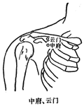 [出处]《素问·水热穴论》:“云门……此八者,以泻四肢之热也。” [穴名解]“云”指云雾,“门”指门户。此指人体气血似天气云雾一样,能滋生万物;而其首出之处即称为云门。 [功用]宣通肺气。 【主治病症】 1.呼吸系统疾病:气管炎、胸痛、哮喘; 2.其它:肩关节周围炎。 3.肺及支气管疾患时常在此处过敏压痛。 【刺灸法】 刺法:向外斜刺0.5~0.8寸,局部酸胀,可向前胸及腋下放散。 2.针刺时不可向内深刺,以防刺破肺脏,造成气胸。 灸法:艾炷灸3~5壮,艾条灸10~15分钟。 [配穴举例]配俞府,治咳喘;配尺泽、列缺,治肩背疼痛。 [现代研究]临床上用于治疗呼吸系统疾病,肩背痛,心绞痛,颈淋巴结炎。 |