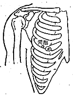 [解剖]皮肤→皮下筋膜→胸肌筋膜→胸大肌→前锯肌→肋间外肌→肋间内肌→胸内筋膜。在胸大肌外下部,胸小肌下部起端,深层为第4肋间内、外肌;由胸腹壁静脉,胸外侧动、静脉分支;布有胸前神经肌支及第4肋间神经。 [取法]在第4肋间隙中,乳头外侧1寸处取穴。 [简易取法]在第4肋间隙中,前正中线旁开5寸取穴。 [出处]《灵枢·本输》:“手心主也,名曰天池”。 [功用]理气活血,疏通包络。 [主治]胸闷痛,心痛,乳痈,腋下肿,咳喘。 1. 循环系统疾病:心绞痛,心脏外膜炎; 2. 妇产科系统疾病:乳腺炎,乳汁分泌不足; 3. 外科系统疾病:淋巴结核,腋窝淋巴腺炎; 4. 其它:肋间神经痛,脑充血等。 [刺灸法]斜刺或平刺0.5—0.8寸;可灸。 刺法:斜刺或平刺0.5-0.8寸,局部酸胀。不可深刺,以免造成气胸。 灸法:艾炷灸3-5壮,艾条温灸5-10分钟。 [配穴举例]配内关,可以治疗心胸疼痛;配膻中、少泽、乳根,可以治疗乳痈。 [附注]本穴正在胸腔部位,内有心、肺等重要器官,不宜深刺。 [现代研究]临床用于治疗乳腺炎,腋下淋巴结炎。 |