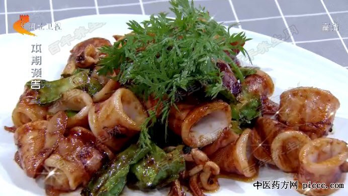 本页提供2018年11月12日河北卫视家政女皇节目视频全集和要点笔记,主题是《酱爆红鱿鱼》。主要介绍酱爆红鱿鱼、爆炒乌鱼花的制作方法等相关内容,提供视频全集的在线观看和主要内容介绍(节目要点笔记)。 酱爆红鱿鱼的制作方法:红鱿鱼洗净切断;龙豆拔筋、改刀,焯水、加少许油和盐。红鱿鱼焯水后,用吸油纸把水滤净。锅内放油,放葱姜片煸香,将1-2勺海鲜酱、排骨酱和沙茶酱按1:1:1的比例入锅,加适量料酒、老抽调味。将焯水后的红鱿鱼和龙豆倒入酱汁锅中快速翻炒,不放盐,加少许鸡精和糖,一分钟出锅装盘。