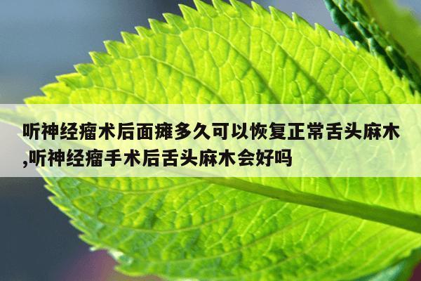 听神经瘤术后3个多月,面瘫您好!建议您继续药物治疗,观察到术后6月到1年,如果神经功能恢复,不需要特殊治疗;如果没有恢复,可以做面神经-舌下神经吻合手术。刘海生 清华大学玉泉医院-神经外科-刘海生副主任医师 查看原帖 听神经瘤手术后面瘫多久能恢复?出现这样的情况建议你可以局部做做按摩以及做做营养神经的治疗的,看看恢复的情况的。平时的时候注意做好防护,通常在6个月观察到面神经功能恢复的征象。如果术中明确有面神经解剖结构离断或严重损伤,在6个月的观察期内面神经,肌电图检查和面神经功能的临床观察均没有任何好转迹象,此时应行面神经与其他神经吻合。
