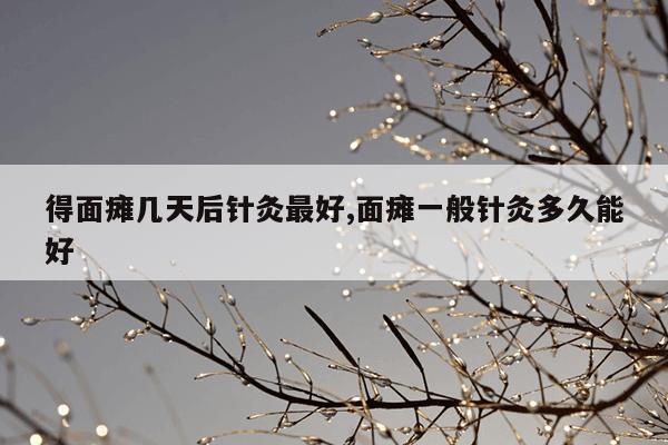 得面瘫几天才适宜针灸治疗一周内药物治疗、理疗,一周后配合针灸,争取在两个月内治愈,不然有些人会出现面肌抽搐