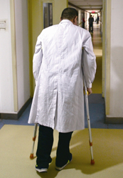 最近,一张医生拄着双拐走向诊室的背影照片在微信上广泛传播,一位张姓微友评论:“医者仁心,大爱无疆,心系患者,为这样的好医生祝福!”一位叫天天的微友评论:“坚强的背影令我感动,为自强不息的医者精神点赞!”