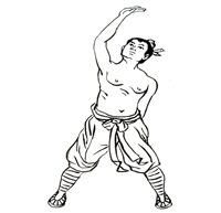 左手上顶,右手下探。