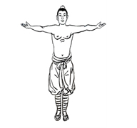 慢慢恢复至正身位,两手侧平举,掌心向上。