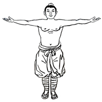 动作要领:两脚并拢,自上而下放松,舌抵上腭,两目平视。