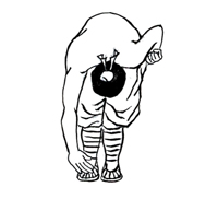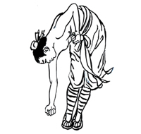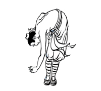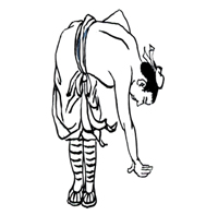 动作要领:右手从上垂直下落至左脚踝外侧。