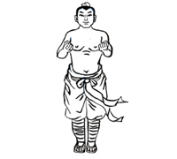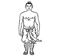 动作要领:两脚并拢,自上而下放松,舌抵上腭,双目平视。