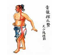 青龙探爪势疏导足少阳经筋,与此经筋相应的是足少阳胆经。