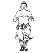 左、右势合为一次,做七次后,两手握拳收置肋下。