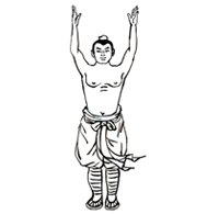 动作要领:松静站立。咬牙,舌抵上腭,双目平视,调匀鼻息。