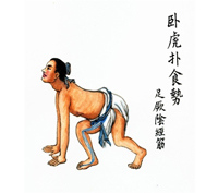 2.当焦虑、烦躁时,可择无人处导引卧虎扑食势七次,有平和肝气、纾解肝郁之效。