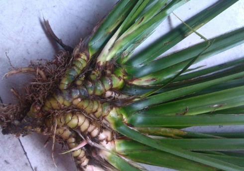 种菖蒲还发展成为一种文人的清玩,因此得“天下第一雅草”之称。菖蒲的品种很多,常见的有石菖蒲、水菖蒲及菖蒲的变种钱菖蒲(金钱蒲)等。什么是药用的正品呢?李时珍说:“生于水石之间,叶具剑脊,瘦根节密,高尺余者,石菖蒲也。”菖蒲供药用者,《神农本草经》最早的记载仅以“菖蒲”为正名,而其后的历代本草多是以“菖蒲”为名来叙述的,而且在药材中有时确实混杂了不同品种。至明代陈嘉谟《本草蒙诠》中,才将“石菖蒲”列为药材正名。从《神农本草经》所记载的菖蒲“生池泽”“一名昌阳”进行考证,有人得出结论,认为当系水菖蒲(别名泥菖蒲、白菖蒲)的可能性大。但后世如《名医别录》和《本草经集注》所记载的均为细根的石菖蒲,这可能是经过临床验证筛选之后的结果。因为后世认为大根的水菖蒲质量较次,加之古代文献中还认为水菖蒲不可久服,而石菖蒲可以久服,所以石菖蒲的药用地位被确定下来,被用于临床并延续至今。
