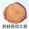 大黄《中国药典》:大黄图片 拼音Dài Huánɡ 英文名RADIX ET RHIZOMA RHEI 来源本品为蓼科植物掌叶大黄Rheum palmatum L。、 唐古特大黄Rheum tanguticum Maxim。 ex Balf。或药用大黄Rheum officinale Baill。的干燥根及根茎。秋末茎叶枯萎或次春发芽前采挖,除去细根,刮去外皮,切瓣或段,绳穿成串干燥或直接干燥。 性状本品呈类圆柱形、圆锥形、卵圆形或不规则块状,长3~17cm,直径3~10cm。除尽外皮者表面黄棕色至红棕色,有的可见类白色网状纹理及星点(异型维管束)散在,残留的外皮棕褐色,多具绳孔及粗皱纹。质坚实,有的中心稍松软,断面淡红棕色或黄棕色,显颗粒性;根茎髓部宽广,有星点环列或散在;根木部发达,具放射状纹理,形成层环明显,无星点。气清香,味苦而微涩,嚼之粘牙,有砂粒感。 鉴别(1) 本品横切面:根木栓层及皮层大多已除去。韧皮部筛管群明显;薄壁组织发达。形成层成环。木质部射线较密,宽2~4列细胞,内含棕色物;导管非木化,常1至数个相聚,稀疏排列。薄壁细胞含草酸钙簇晶,并含多数淀粉粒。 根茎髓部宽广,其中常见黏液腔,内有红棕色物;异型维管束散在,形成层成环,木质部位于形成层外方,韧皮部位于形成层内方,射线呈星状射出。 粉末黄棕色。草酸钙簇晶直径20~160μm,有的至190μm。具缘纹孔、网纹、螺纹及环纹导管非木化。淀粉粒甚多,单粒类球形或多角形,直径3~45μm,脐点星状;复粒由2~8分粒组。 (2) 取本品粉末少量,进行微量升华,可见菱状针晶或羽状结晶。 (3) 取本品粉末0。1g,加甲醇20ml浸渍1小时,滤过,取滤液5ml,蒸干,加水10ml使溶解,再加盐酸1ml,置水浴上加热30分钟,立即冷却,用乙醚分2次提取,每次20ml,合并乙醚液,蒸干,残渣加氯仿1ml使溶解,作为供试品溶液。另取大黄对照药材0。1g,同法制成对照药材溶液。再取大黄酸对照品,加甲醇制成每1ml含1mg的溶液,作为对照品溶液。照薄层色谱法(附录Ⅵ B)试验,吸取上述三种溶液各4μl,分别点于同一以羧甲基纤维素钠为黏合剂的硅胶H薄层板上,以石油醚(30~60℃)-甲酸乙酯-甲酸(15:5:1)的上层溶液为展开剂,展开,取出,晾干,置紫外光灯(365nm)下检视。供试品色谱中,在与对照药材色谱相应的位置上,显相同的五个橙黄色荧光主斑点;在与对照品色谱相应的位置上,显相同的橙黄色荧光斑点,置氨蒸气中熏后,日光下检视,斑点变为红色。 含量测定照高效液相色谱法(附录Ⅵ D)测定。 色谱条件与系统适用性试验 用十八烷基硅烷键合硅胶为填充剂;甲醇-0.1%磷酸溶液(85:15)为流动相;检测波长为254nm。理论板数按大黄素峰计算应不低于1500。 对照品溶液的制备 精密称取大黄素、大黄酚对照品各5mg,分别置50ml量瓶中,用甲醇溶解并稀释至刻度,摇匀;分别精密量取大黄素溶液1ml、大黄酚溶液2ml,分别置25ml量瓶中,加甲醇至刻度,摇匀,即得(大黄素每1ml中含4μg、大黄酚每1ml中含8μg)。 供试品溶液的制备 取本品粉末(过四号筛)约0.1g[同时另取本品粉末测定水分(附录ⅨH 第二法)],精密称定,置50ml锥形瓶中,精密加甲醇25ml,称定重量,加热回流30分钟,放冷,再称定重量,用甲醇补足减失的重量,摇匀,滤过,精密量取续滤5ml,置50ml圆底烧瓶中,挥去甲醇,加2.5mol/L硫酸溶液10ml,超声处理5分钟,再加氯仿10ml,加热回流1小时,冷却,移置分液漏斗中,用少量氯仿洗涤容器,并入分液漏斗中,分取氯仿层,酸液用氯仿提取2次,每次约8ml,合并氯仿液,以无水硫酸钠脱水,氯仿液移至100ml锥形瓶中,挥去氯仿,残渣精密加甲醇10ml,称定重量,置水浴中微热溶解残渣,放冷后,再称定重量,用甲醇补足减失的重量,摇匀,滤过,取续滤液,即得。 测定法 分别精密吸取上述两种对照品溶液与供试品溶液各5μl,注入液相色谱仪,测定,即得。 本品按干燥品计算,含大黄素(C15H10O5)和大黄酚(C15H10O4)的总量不得少于0.05%。 炮制大黄 除去杂质,洗净,润透,切厚片或块,晾干。 熟大黄 取净大黄块,照酒炖或酒蒸法(附录Ⅱ D)炖或蒸至内外均呈黑色。 大黄炭 取净大黄片,照炒炭法(附录Ⅱ D)炒至表面焦黑色、内部焦褐色。 性味苦,寒。 归经归脾、胃、大肠、肝、心包经。 功能主治泻热通肠,凉血解毒,逐瘀通经。用于实热便秘,积滞腹痛,泻痢不爽,湿热黄疸,血热吐衄,目赤,咽肿,肠痈腹痛,痈肿疔疮,瘀血经闭,跌打损伤,外治水火烫伤;上消化道出血。酒大黄善清上焦血分热毒。用于目赤咽肿,齿龈肿痛。熟大黄泻下力缓,泻火解毒。用于火毒疮疡。大黄炭凉血化瘀止血。用于血热有瘀出血症。 用法用量3~30g,用于泻下不宜久煎。外用适量,研末调敷患处。 注意孕妇慎用。 贮藏置通风干燥处,防蛀。 制剂大黄流浸膏 摘录《中国药典》 《中药大辞典》:大黄拼音Dài Huánɡ 别名黄良、火参、肤如(《吴普本草》),将军(李当之《药录》),锦纹大黄(《千金方》),川军(《中药材手册》),峻(藏名)。 出处《本经》 来源为蓼科植物掌叶大黄、唐古特大黄或药用大黄的根茎。 9~10月间选择生长3年以上的植株,挖取根茎,切除茎叶、支根,刮去粗皮及顶芽,风干、烘干或切片晒干。 多年生高大草本。根粗壮。茎直立,高2米左右,光滑无毛,中空。根生叶大,有肉质粗壮的长柄,约与叶片等长;叶片宽心形或近圆形,径达40厘米以上,3~7掌状深裂,裂片全缘或有齿,或浅裂,基部略呈心形,有3~7条主脉,上面无毛或稀具小乳突,下面被白毛,多分布于叶脉及叶缘;茎生叶较小,互生;叶鞘大,淡褐色,膜质。圆锥花序大形,分枝弯曲,开展,被短毛;花小,