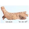 厚朴《中国药典》:厚朴图片 拼音Hòu Pò 英文名CORTEX MAGNOLIAE OFFICINALIS 别名川朴、紫油厚朴 来源本品为木兰科植物厚朴Magnolia officinalis Rehd. et Wils.或凹叶厚朴Magnolia officinalis Rehd. et Wils. var. biloba Rehd. et Wils.的干燥干皮、根皮及枝皮。4~6月剥取,根皮及枝皮直接阴干;干皮置沸水中微煮后,堆置阴湿处,“发汗”至内表面变紫褐色或棕褐色时,蒸软,取出,卷成筒状,干燥。 性状干皮:呈卷筒状或双卷筒状,长30~35cm,厚0。2~0。7cm,习称“筒朴”;近根部的干皮一端展开如喇叭口,长13~25cm,厚0。3~0。8cm,习称“靴筒朴”。外表面灰棕色或灰褐色,粗糙,有时呈鳞片状,较易剥落,有明显椭圆形皮孔和纵皱纹,刮去粗皮者显黄棕色。内表面紫棕色或深紫褐色,较平滑,具细密纵纹,划之显油痕。质坚硬,不易折断,断面颗粒性,外层灰棕色,内层紫褐色或棕色,有油性,有的可见多数小亮星。气香,味辛辣、微苦。 根皮(根朴):呈单筒状或不规则块片;有的弯曲似鸡肠,习称“鸡肠朴”。质硬,较易折断,断面纤维性。 枝皮(枝朴):呈单筒状,长10~20cm,厚0。1~0。2cm。质脆,易折断,断面纤维性。 鉴别(1) 本品横切面:木栓层为10余列细胞;有的可见落皮层。皮层外侧有石细胞环带,内侧散有多数油细胞及石细胞群。韧皮部射线宽1~3列细胞;纤维多数个成束;亦有油细胞散在。粉末棕色。纤维甚多,直径15~32μm ,壁甚厚,有的呈波浪形或一边呈锯齿状,木化,孔沟不明显。石细胞类方形、椭圆形,卵圆形或不规则分枝状,直径11~65μm,有时可见层纹。油细胞椭圆形或类圆形,直径50~85μm ,含黄棕色油状物。 (2) 取本品粉末0。5g,加甲醇5ml ,密塞,振摇30分钟,滤过,滤液作为供试品溶液,另取厚朴酚与和厚朴酚对照品,加甲醇制成每1ml 各含 1mg的混合溶液,作为对照品溶液。照薄层色谱法(附录Ⅵ B)试验,吸取上述两种溶液各5μl,分别点于同一硅胶G薄层板上,以苯-甲醇(27:1)为展开剂,展开,取出,晾干,喷以 1%香草醛硫酸溶液,在100℃加热至斑点显色清晰。供试品色谱中,在与对照品色谱相应的位置上,显相同颜色的斑点。 炮制厚朴:刮去粗皮,洗净,润透,切丝,晒干。本品为弯曲丝条状,断面纤维性,外表面黄棕色,内表深紫褐色。 姜厚朴:取厚朴丝,照姜汁炙法(附录Ⅱ D)炒干。本品为弯曲丝条状,断面纤维性,呈紫褐色。 性味苦、辛,温。 归经归脾、胃、肺、大肠经。 功能主治燥湿消痰,下气除满。用于湿滞伤中,脘痞吐泻,食积气滞,腹胀便秘,痰饮喘咳。 用法用量3~9g。 贮藏置通风干燥处。 备注(1)常与苍朮、陈皮等配合用于湿困脾胃、脘腹致胀满等症。对气滞胸腹胀痛,可配木香、枳壳同用;便秘腹胀,可配大黄、枳实同用;治痰气互结梅核气,可配苏叶、半夏等同用。用于痰湿内蕴、胸闷喘咳,常与苏子、半夏,或麻黄、杏仁等同用。 摘录《中国药典》 《中药大辞典》:厚朴拼音Hòu Pò 别名厚皮(《吴普本草》),重皮(《广雅》),赤朴(《别录》),烈朴(《日华子本草》)。 出处《本经》 来源为木兰科植物厚朴或凹叶厚朴的树皮或根皮。立夏至夏至间剥取生长20年以上的植株的干皮或根皮(须先将外表粗皮刮去),阴干;再堆放于土坑内,在一定的温度和湿度下使之发汗,取出晒干,再蒸熟使变软,卷成筒状,阴干。细小的根皮,只须除净泥土,适当切断,阴干即可。 原形态①厚朴 落叶乔木,高5~15米。树皮紫褐色。小枝幼时有细毛,老时无毛,冬芽粗大,圆锥状,芽鳞密被淡黄褐色绒毛。叶互生,椭圆状倒卵形,长35~45厘米,阔12~20厘米,先端圆而有短急尖头,稀钝,基部渐狭成楔形,有时圆形,全缘,上面淡黄绿色,无毛,幼叶下面有密生灰色毛,者叶呈白粉状,侧脉上密生长毛;叶柄长3~4厘米。花与叶同时开放,单生枝顶,杯状,白色,芳香,直径15厘米;花梗粗短,长2~3.5厘米,密生丝状白毛;萼片与花瓣共9~12,或更多,肉质,几等长;萼片长圆状倒卵形,淡绿白色,常带紫红色;花瓣匙形,白色;雄蕊多数,螺旋状排列;雌蕊心皮多数,分离,子房长圆形。聚合果长椭圆状卵形,长9~12厘米,直径5~6.5厘米,心皮排列紧密,成熟时木质,顶端有弯尖头。种子三角状倒卵形,外种皮红色。花期4~5月。果期9~10月。 分布浙江、广西、江西、湖南、湖北、四川、贵州、云南、陕西、甘肃等地。 ②凹叶厚朴,又名:庐山厚朴。 与上种的主要不同点,在叶片先端凹陷成2钝圆浅裂片,裂深2~3.5厘米。 分布浙江、江西、安徽、广西等地。 性状商品由于采皮的部位、加工及形状的不同,种类很多,主要有筒朴、靴角朴、根朴、枝朴四类。 ①筒朴 为主干的干皮,经加工后卷成双卷筒状,形似"如意",故又称为"如意卷厚朴"或"如意朴"。长15~45厘米,厚2~5毫米。表面呈淡棕色至深棕色,较薄的皮,表面裂纹少,有纵纹,可见圆形纵裂皮孔;较厚者,表面粗糙,栓皮鳞状,易剥落。内表面紫棕色,平滑,有细致的纵走纹理,以指甲划之显油纹。质较润而坚硬,不易折断,断面外侧呈灰棕色纤维性,内侧为紫棕色颗粒状,油润性。气芳香,味微辛,咀嚼之少残渣。 ②靴角朴 为靠近根部的干皮,经加工后其形如靴,故名。全长约30~40厘米,厚约3~10毫米。外皮粗糙,灰棕色或灰褐色,栓皮易剥落。上端为单卷筒状,基部展开成喇叭口形,有纵裂纹及横皱纹呈凹沟状。因厚薄不匀而形成紫棕色和灰黄色相间的花纹,并有刀刮痕。内面为深紫色或深红色,有直条纹,下部有凹下的横沟,与外皮的横皱纹相对,以指甲划之,可见油纹。质润而稍坚,但易折断。断面紫棕色,颗